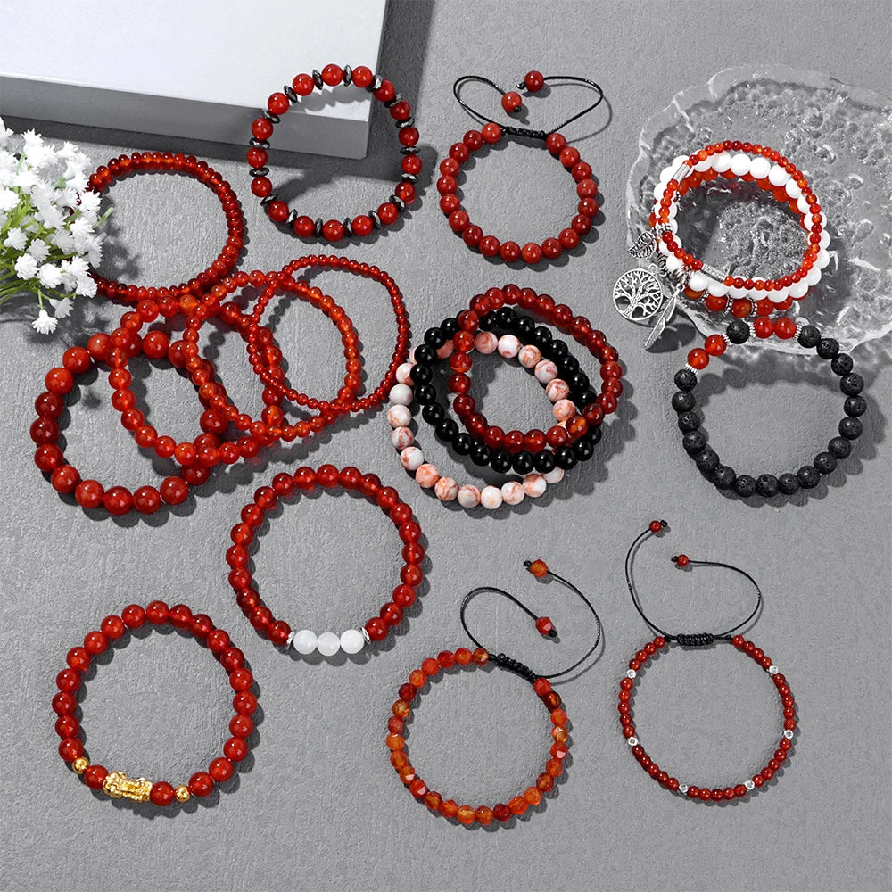 The Carnelian Bracelets feature stunning carnelian stones, believed to enhance creativity and vitality. These bracelets are not only stylish but also help to uplift your energy, making them perfect for those with an active lifestyle.