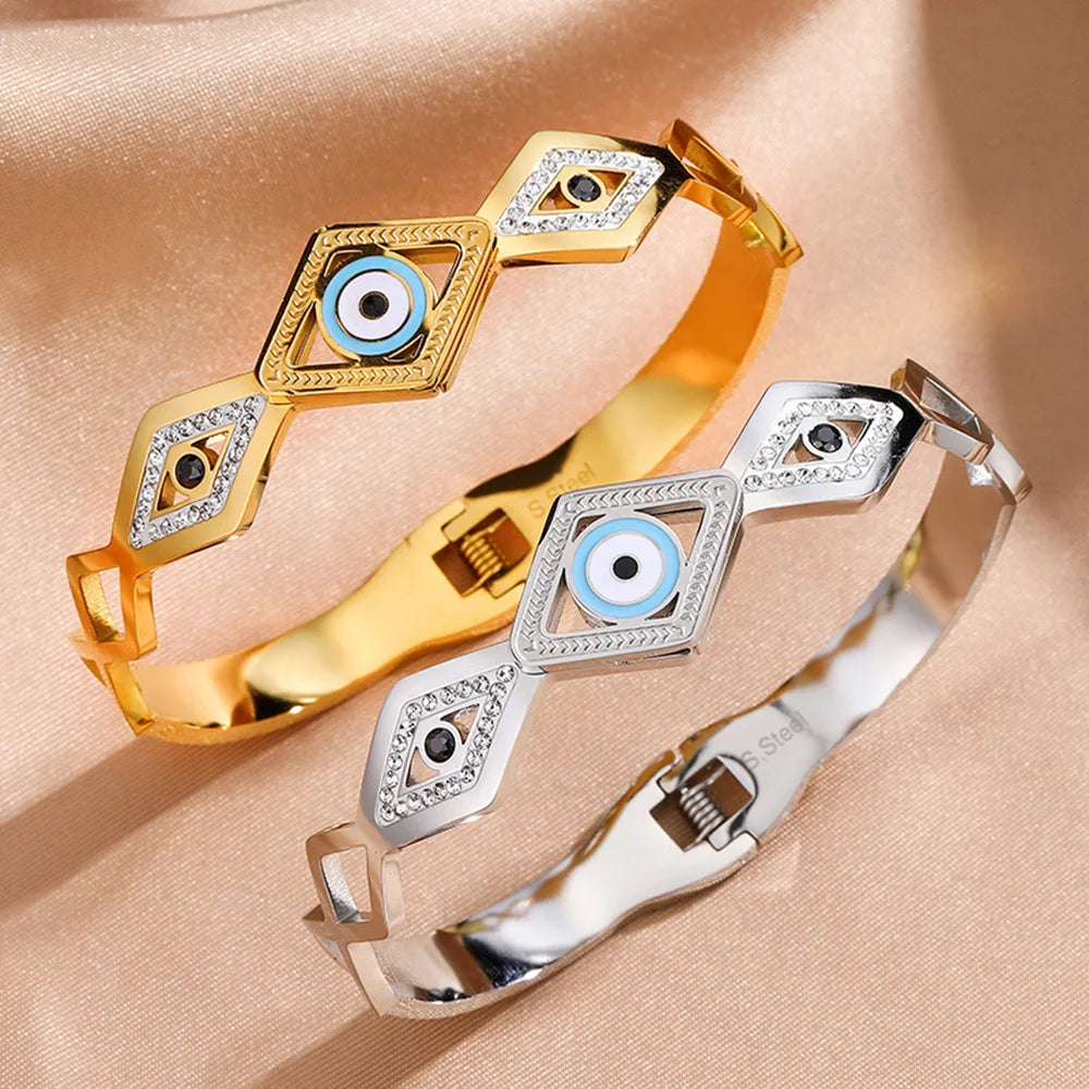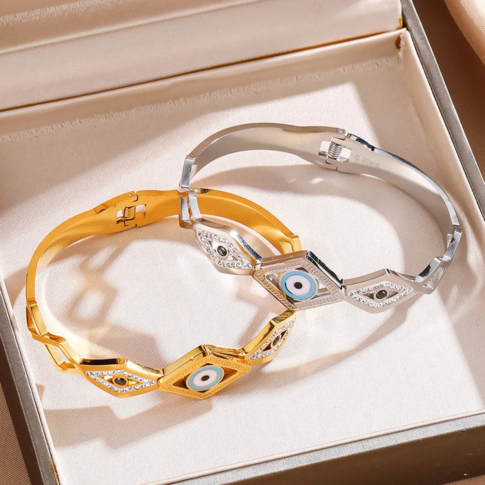 Protect yourself with our enchanting Gold Evil Eye Bracelet. This striking piece features the iconic evil eye symbol, believed to ward off negative energy and bring good luck. Made from premium gold materials, it’s both beautiful and meaningful.