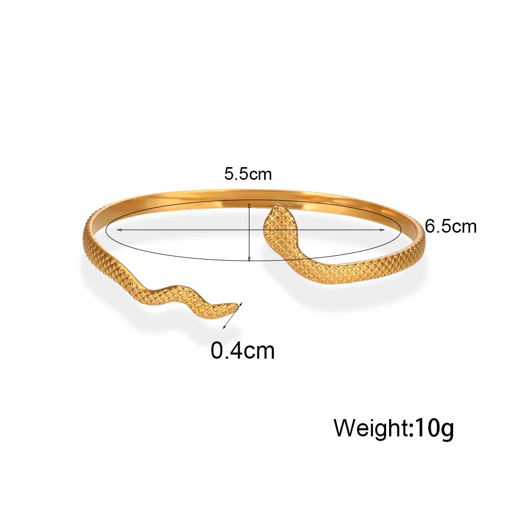 The Gold Snake Bracelet is perfect for those who dare to stand out. Its intricate design and high-quality materials ensure that it will become a favorite accessory, ideal for layering with other bracelets or wearing alone for a statement look.