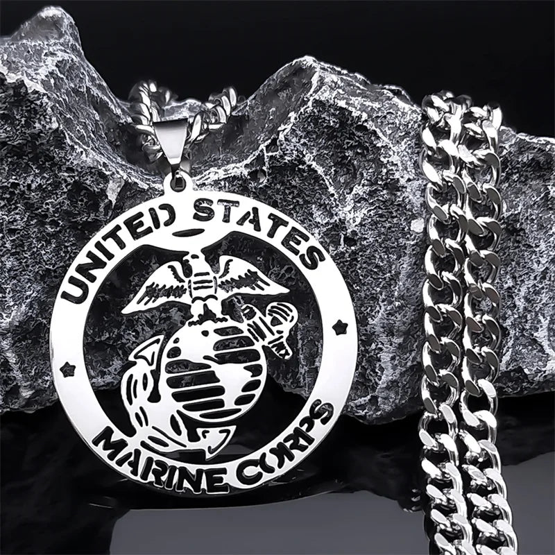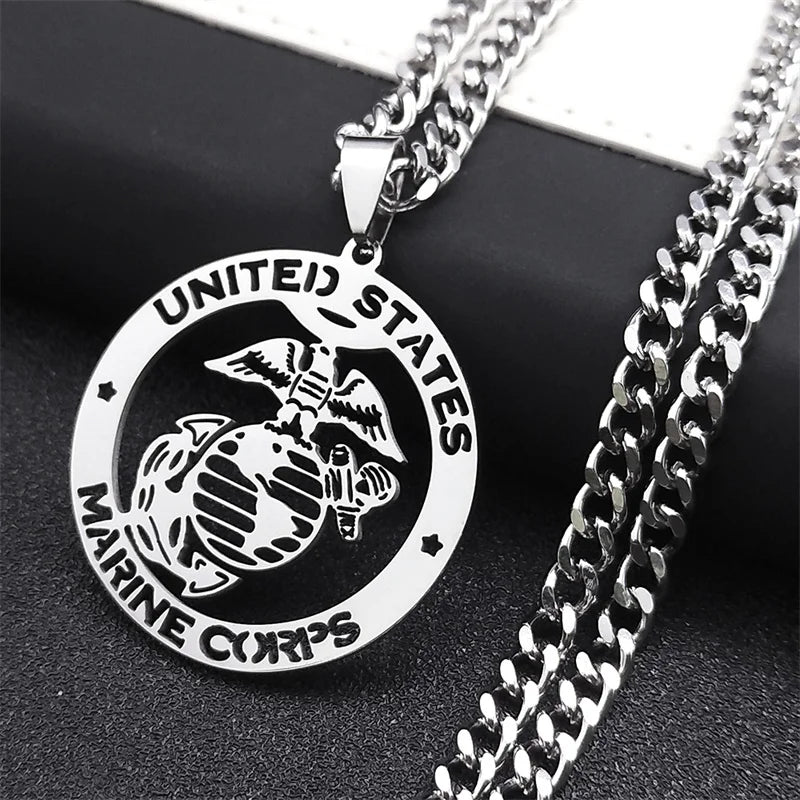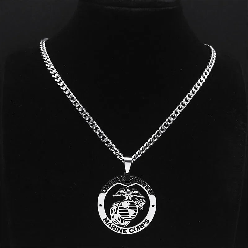 The Marine Corps Necklace features a pendant representing the strength and bravery of the Marine Corps. It’s a meaningful piece for anyone connected to the Marines.