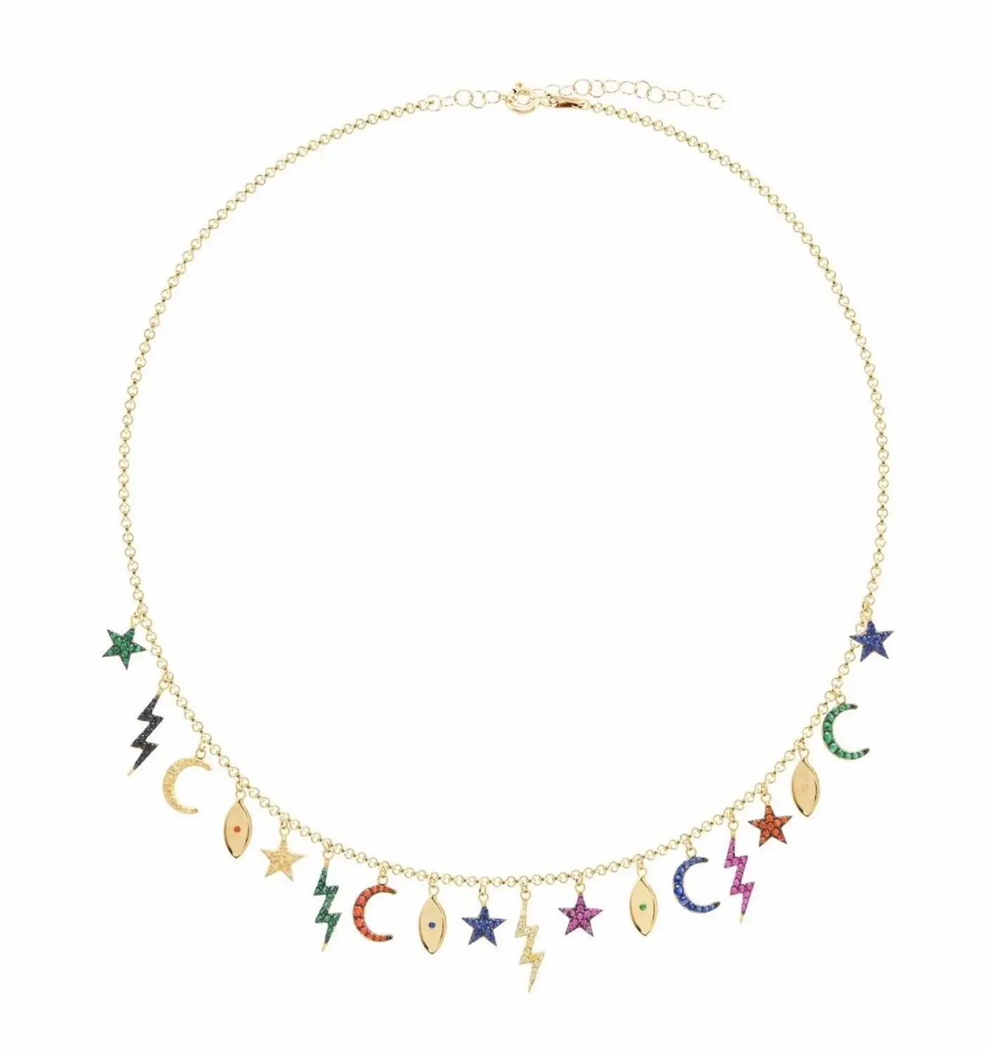 Celebrate your individuality with the Multi Charm Necklace, a playful piece that speaks volumes about your unique style.