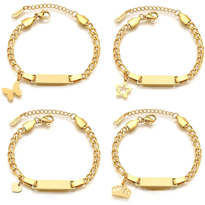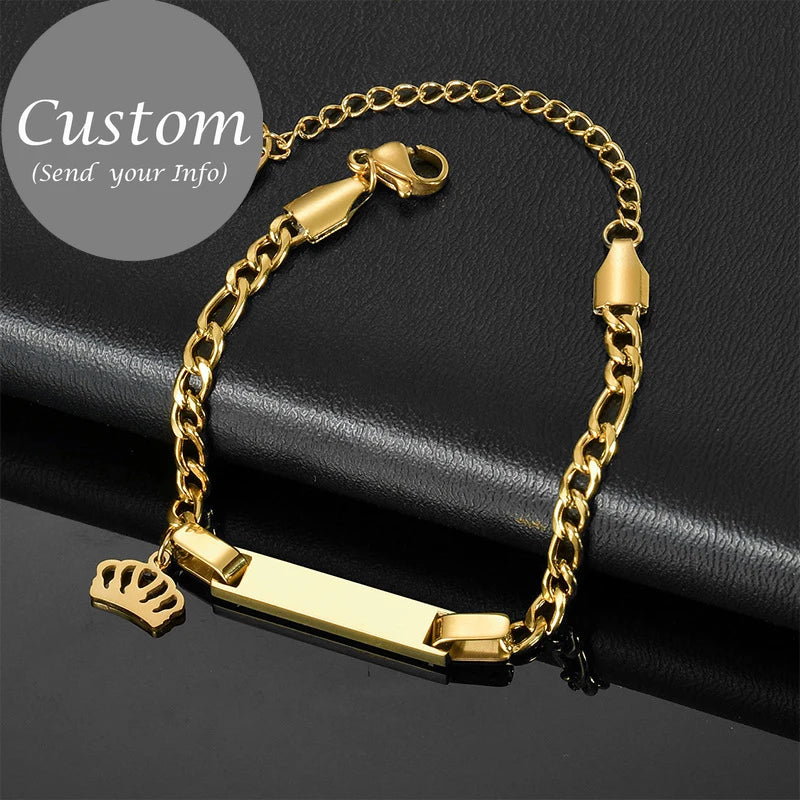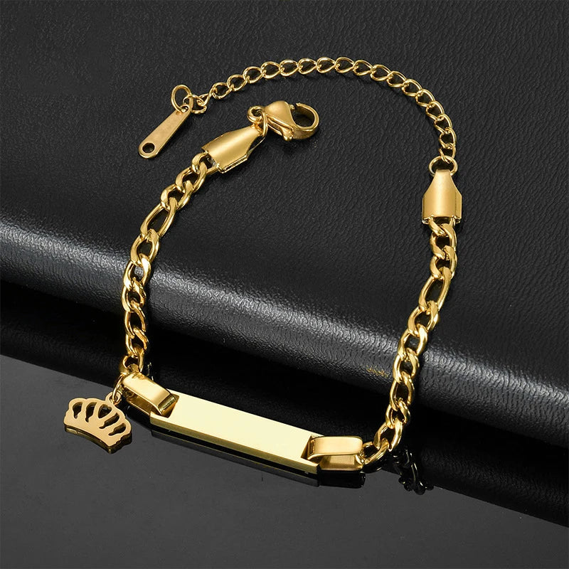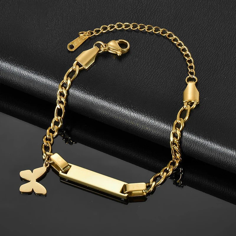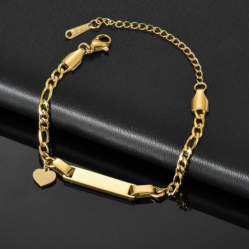 Make a statement with our stunning Name Plate Bracelet. This personalized piece allows you to showcase your name or the name of a loved one in a stylish and elegant manner. Crafted from high-quality materials, this bracelet is perfect for everyday wear or special occasions.