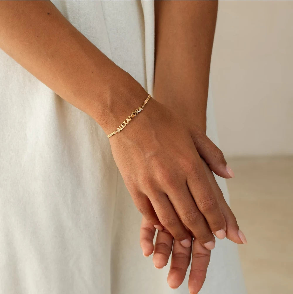This Naming Bracelet is a versatile, personalized accessory that brings added charm to any look, making it a perfect keepsake.
