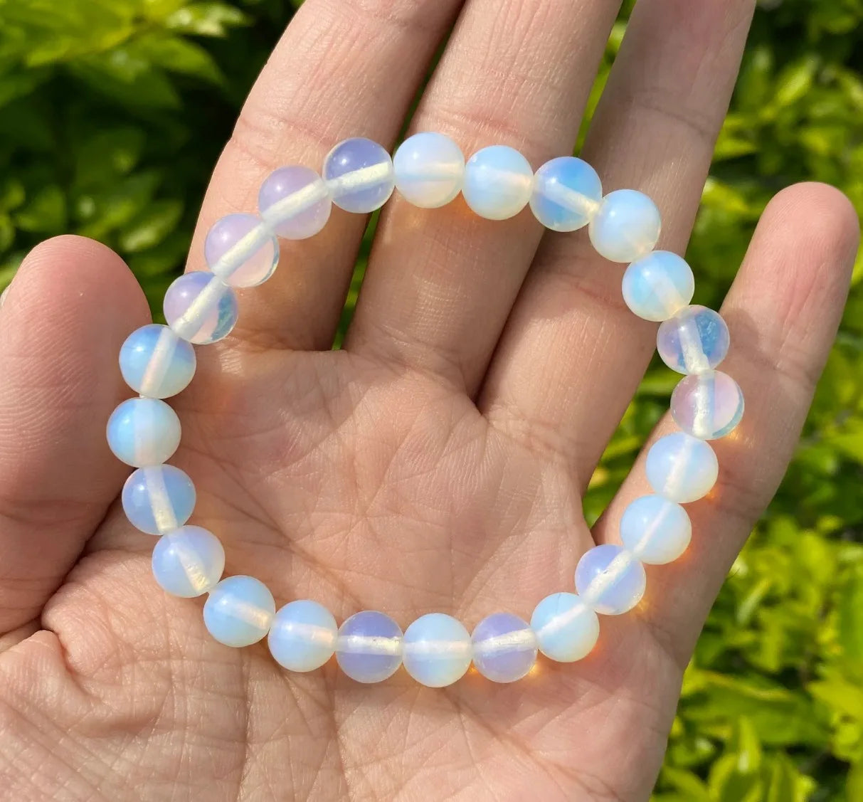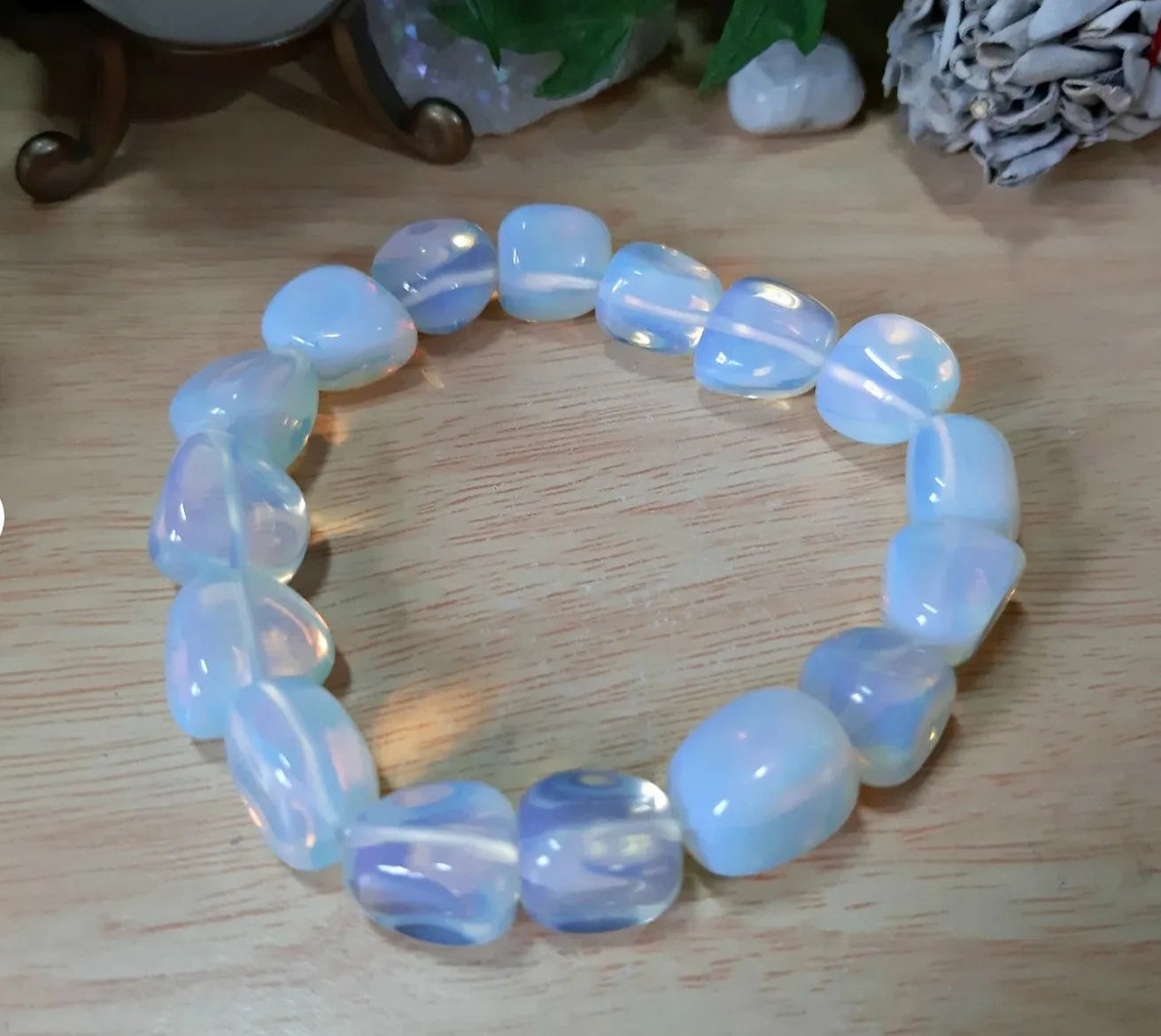 Experience the ethereal beauty of our Opalite Bracelet. This stunning piece features shimmering opalite stones that change color and reflect light beautifully, creating a mesmerizing effect. Crafted from high-quality materials, it’s perfect for adding a touch of elegance to any outfit.