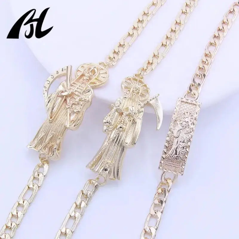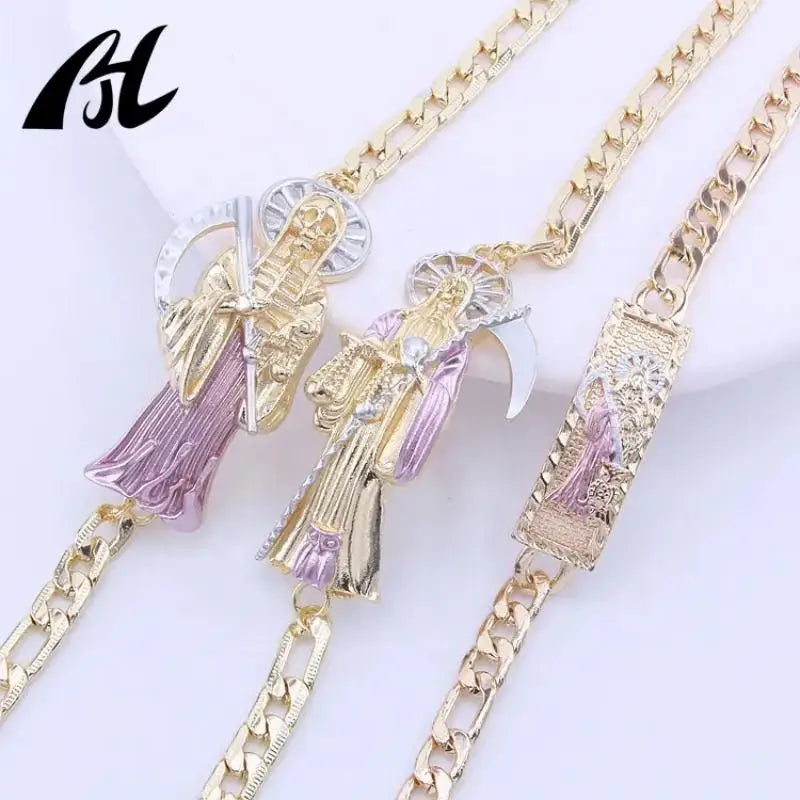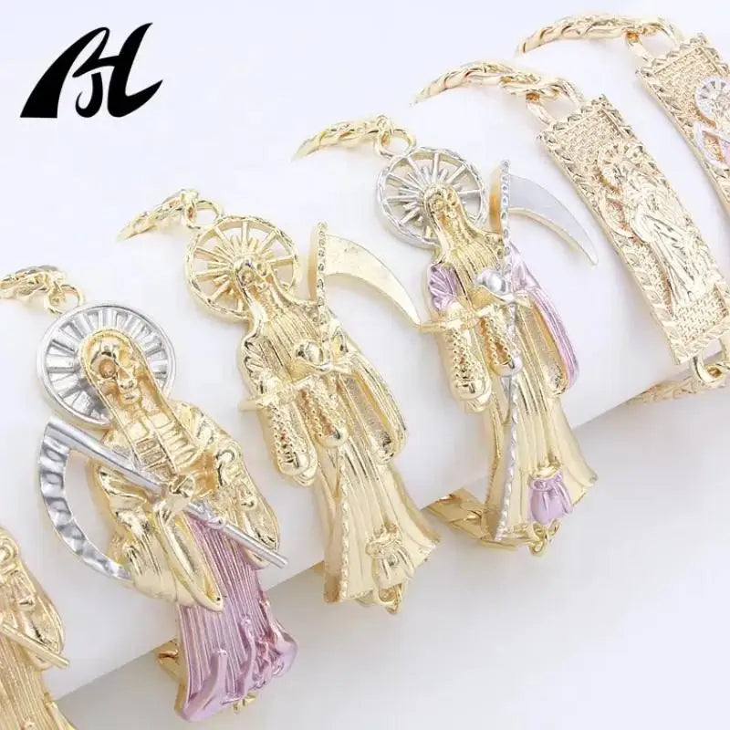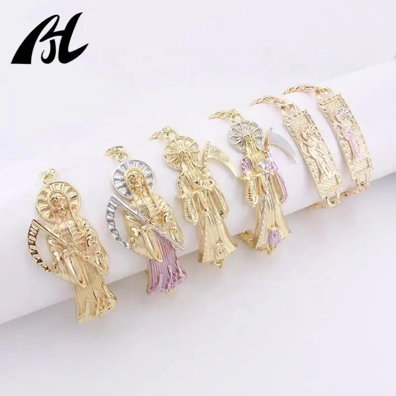 - Detailed charms and symbols that honor Santa Muerte