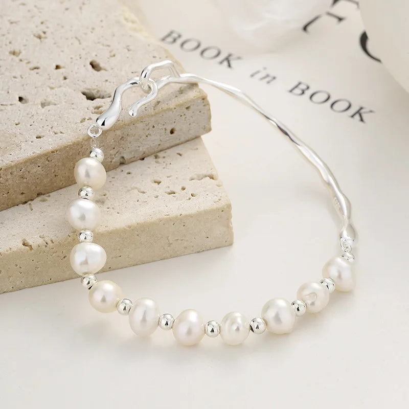 This Silver and Pearl Bracelet is crafted to elevate any outfit, from casual to formal wear. The contrast between silver and pearls creates a sophisticated style, giving you a polished, chic look. Its refined design is sure to catch the eye without overwhelming your style.
