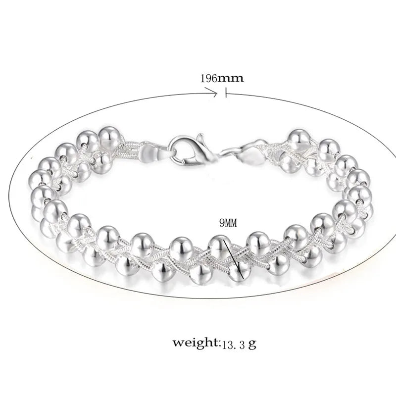 Add a touch of charm to your look with our Sterling Silver Beaded Bracelet. This bracelet features delicate sterling silver beads that bring a classic and elegant appeal to any outfit. Perfect for daily wear or special occasions.